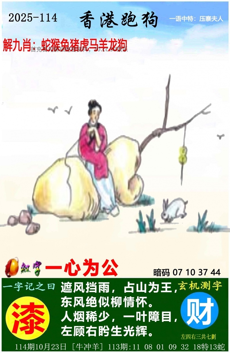 | 114期:七肖中特[羊马虎猴兔牛狗]开:兔39准 |
